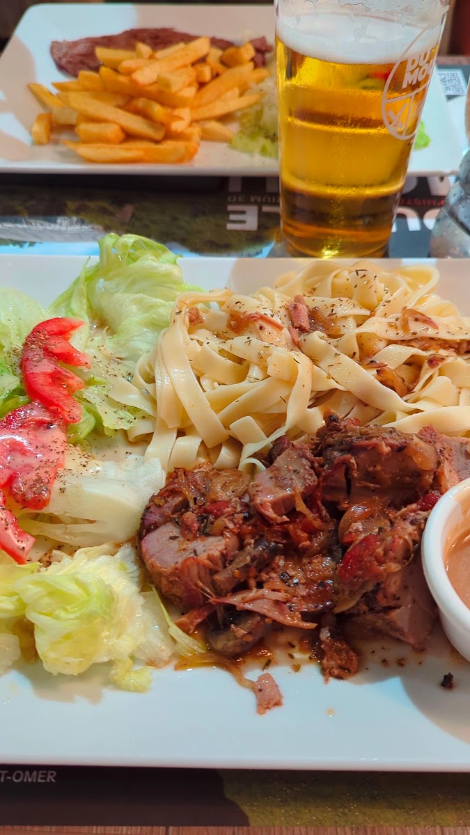 The heartiness of the offerings doesn’t end there. The daily specials are a highlight, featuring dishes like the Assiette campagnarde—a hearty assortment of charcuterie served alongside fresh fries and salad for €13.90. For those seeking a more indulgent fare, the Steak haché de boeuf crème de lard at €13.90 is a must-try, offering a bistro-style take on a classic dish that speaks volumes about comfort food done right.